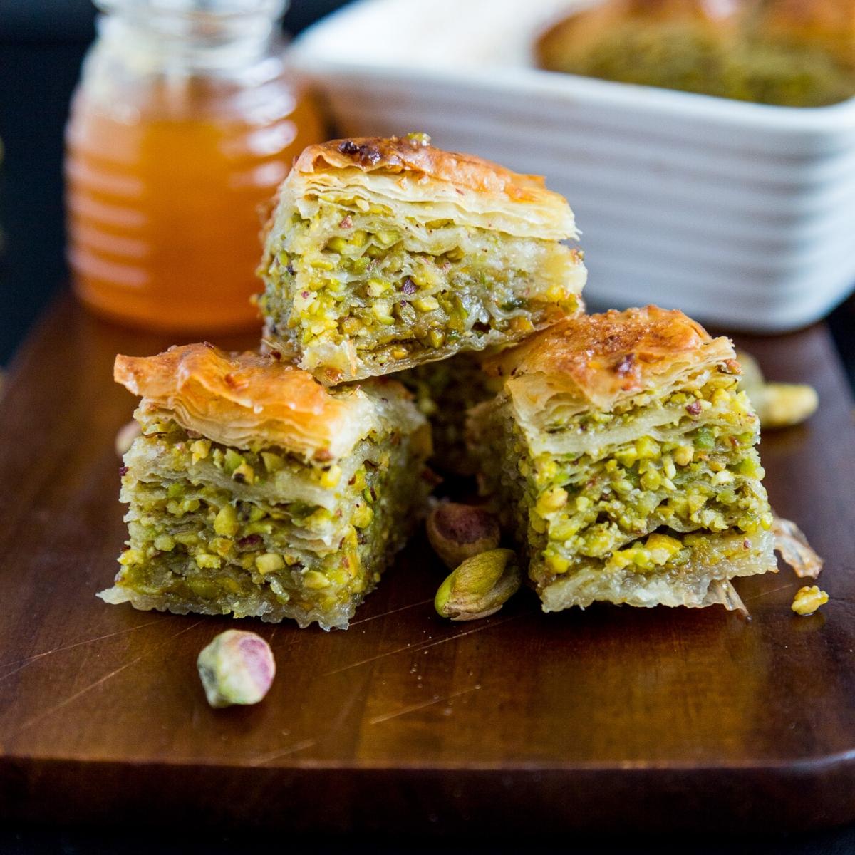 یکی از شیرینی های خوش طعم و سنتی ترکیه و ایران که خیلی پرطرفدار است، باقلوا پسته است. قدمت این شیرینی خانگی به دو قرن قبل از میلاد بر می گردد و در سراسر دنیا بسیار محبوب است. برای تولید این باقلوا از مقدار زیادی پسته استفاده می شود و به همین دلیل بسیار خوش طعم و خوشرنگ است. این شیرینی خوش طعم از لایه های پسته خرد شده و خمیر فیلو تهیه می شود. اگر به دنبال یادگیری روش تهیه باقلوا پسته به سبک اصیل هستید و میخواهید با نکات کلیدی و فوت و فنهای پخت باقلوا پسته آشنا شوید، این مقاله آجیل کاشانی را از دست ندهید.