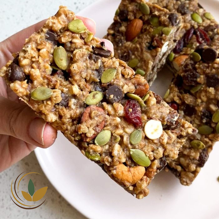 یکی از بهترین ترکیبها برای ورزشکاران شامل جو دوسر پرک، پودر پروتئین وی، خرما یا موز رسیده، مغز بادام و کمی کره بادامزمینی است. این دستور یک انرژی بار خانگی پرانرژی و سرشار از پروتئین ایجاد میکند که میتوان قبل از ورزش برای افزایش استقامت یا بعد از تمرین برای ترمیم عضلات مصرف کرد. نگهداری این بارها در یخچال یا فریزر نیز راحت است و همیشه میانوعدهای سالم در دسترس خواهید داشت.